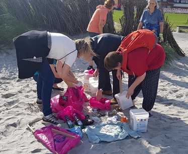 Die NaturFreunde S-H riefen zum jährlichen weltweiten "Coastal Cleanup Day" nach Kalifornien/ Schönberg und zum Priwall nach Lübeck-Travemünde auf. Über 70 Aktive fanden sich zusammen. Während die "Ausbeute" in Kalifornien aufgrund des schlechten Wetters und nur wenigen Urlaubern in den Tagen zuvor sowie Reinigung durch die Gemeinde überschaubar blieb, wurden in Travemünde erhebliche Abfallmengen zusammengetragen - hier wurde sogar vom Ruderboot aus Müll aus der Ostsee gefischt. An den Stränden bildeten jeweils Plastikmüll und Zigarettenkippen die mengenmäßig größten Fundstücke. Im Anschluss an die gemeinsamen Sammelaktionen wartete auf alle Helferinnen und Helfer ein kleiner Imbiss in den Naturfreundehäusern. Sinn der Aktionen ist eher weniger die tatsächliche Säuberung der Strände und eine Verhinderung der Meeresvermüllung als vielmehr die Schärfung des Bewusstseins für eine ordnungsgemäße Abfallentsorgung.